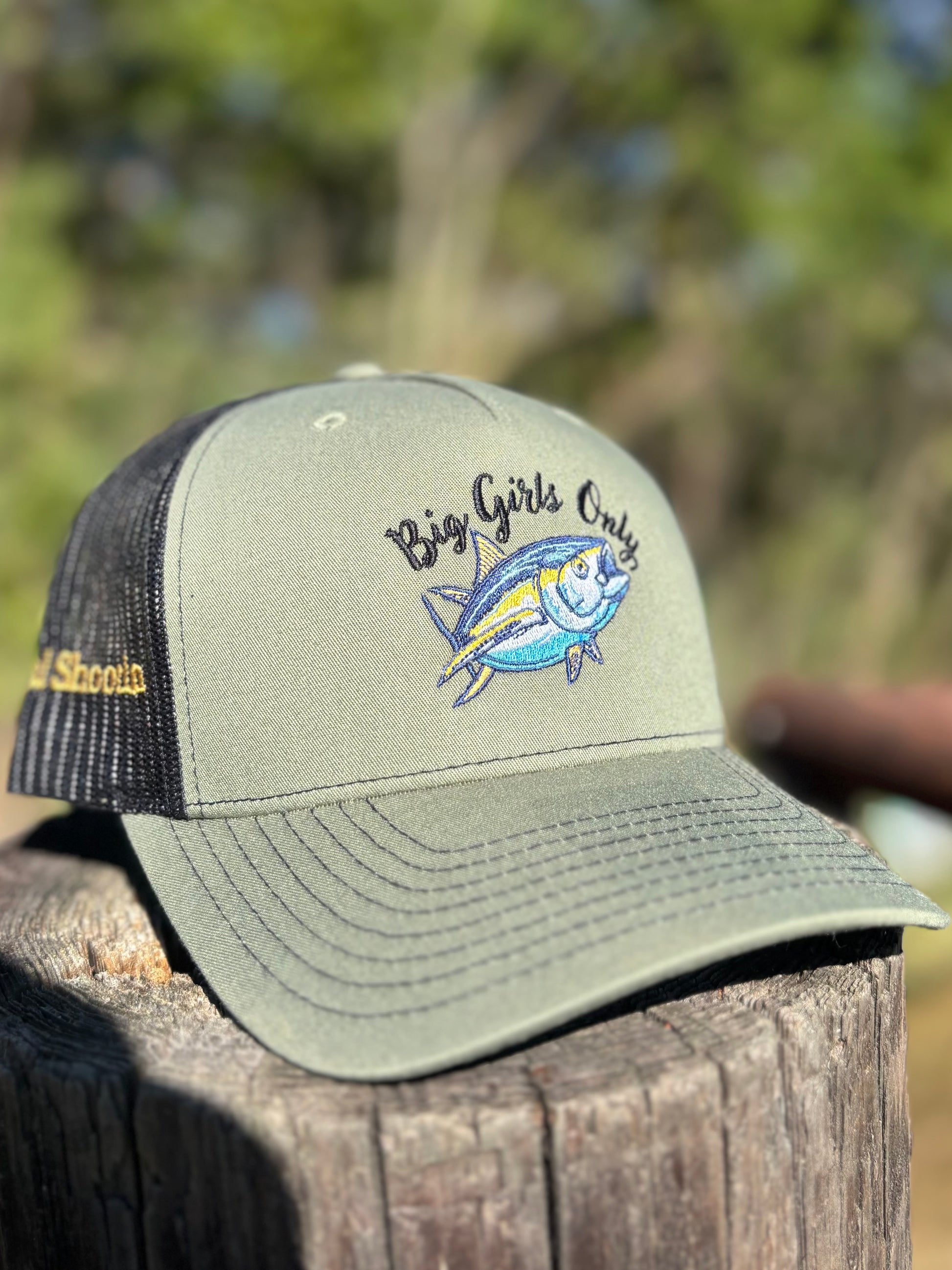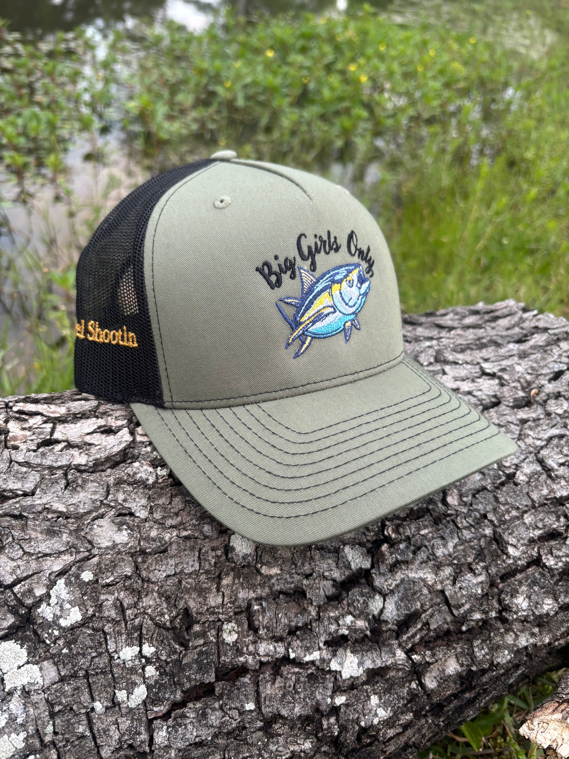 Richardson 5 panel snapback featuring our "Big Girls Only" design; I mean seriously, how do you expect to catch monsters without one of these on your head?