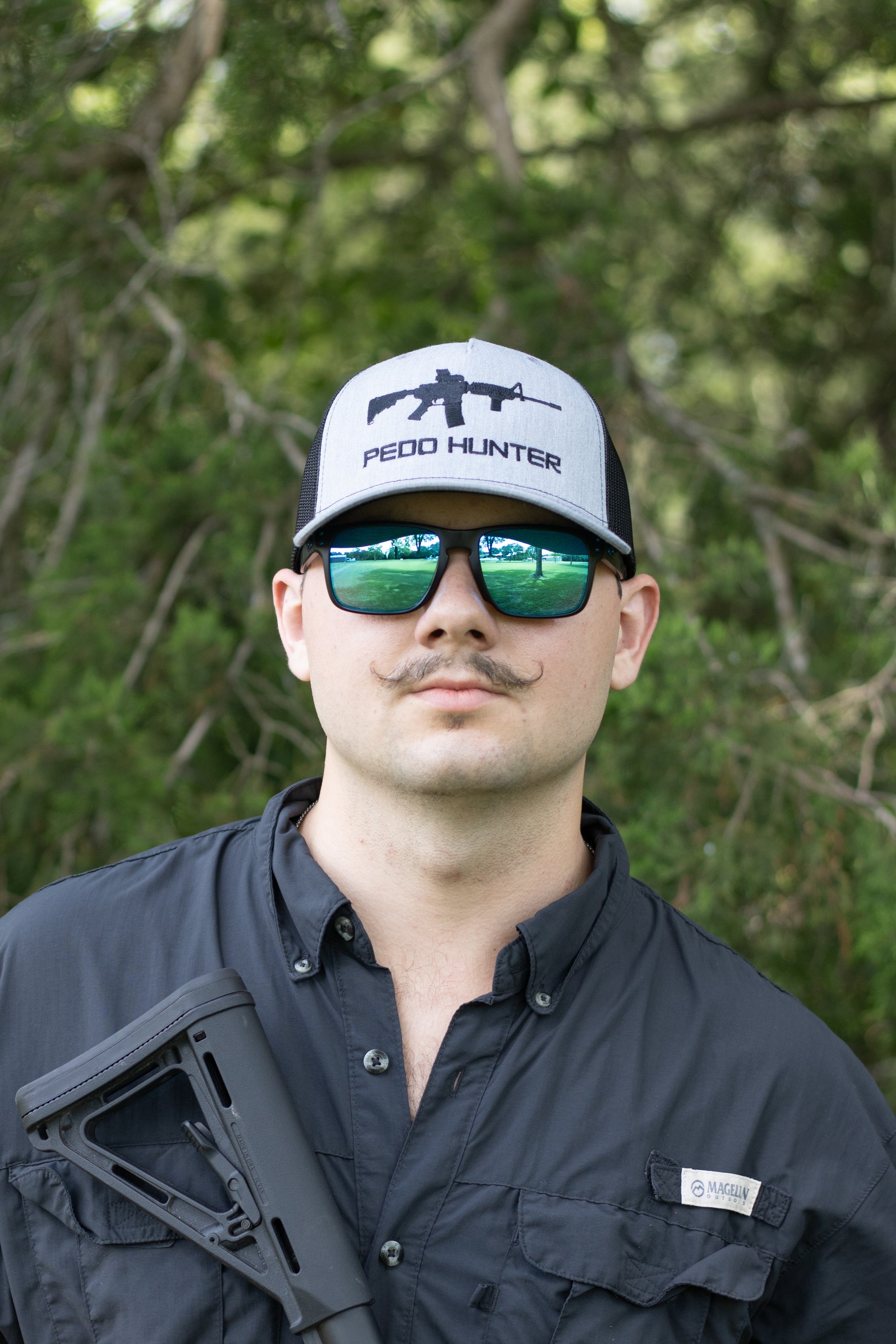 Richardson 5 panel snapback featuring our "Pedo Hunter" design; who doesn't hate them?